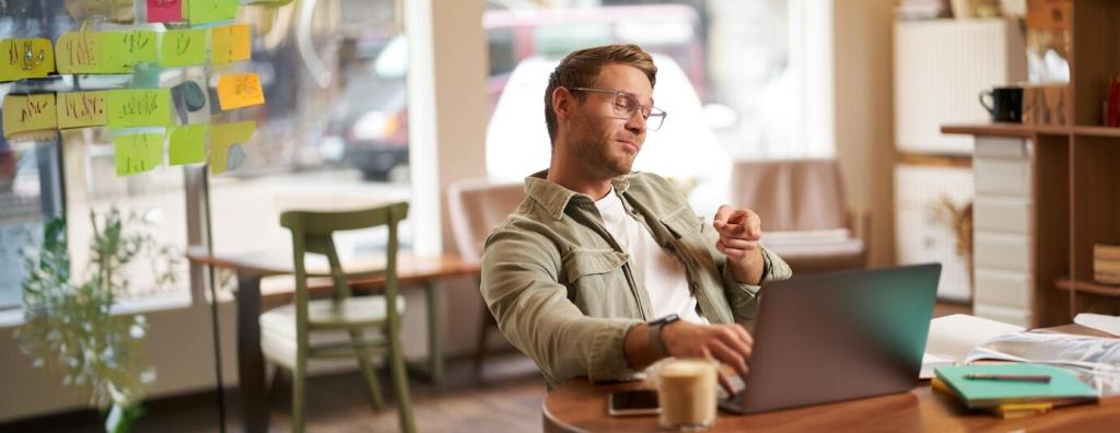 Zwei Minuten Box Breathing oder ein 90-Sekunden-Reset zwischen Calls deeskalieren Stress. Beobachte Körperempfindungen ohne Urteil. Diese Mikro-Pausen sind wie sanfte Neustarts, die deine Entscheidungsqualität spürbar erhöhen.